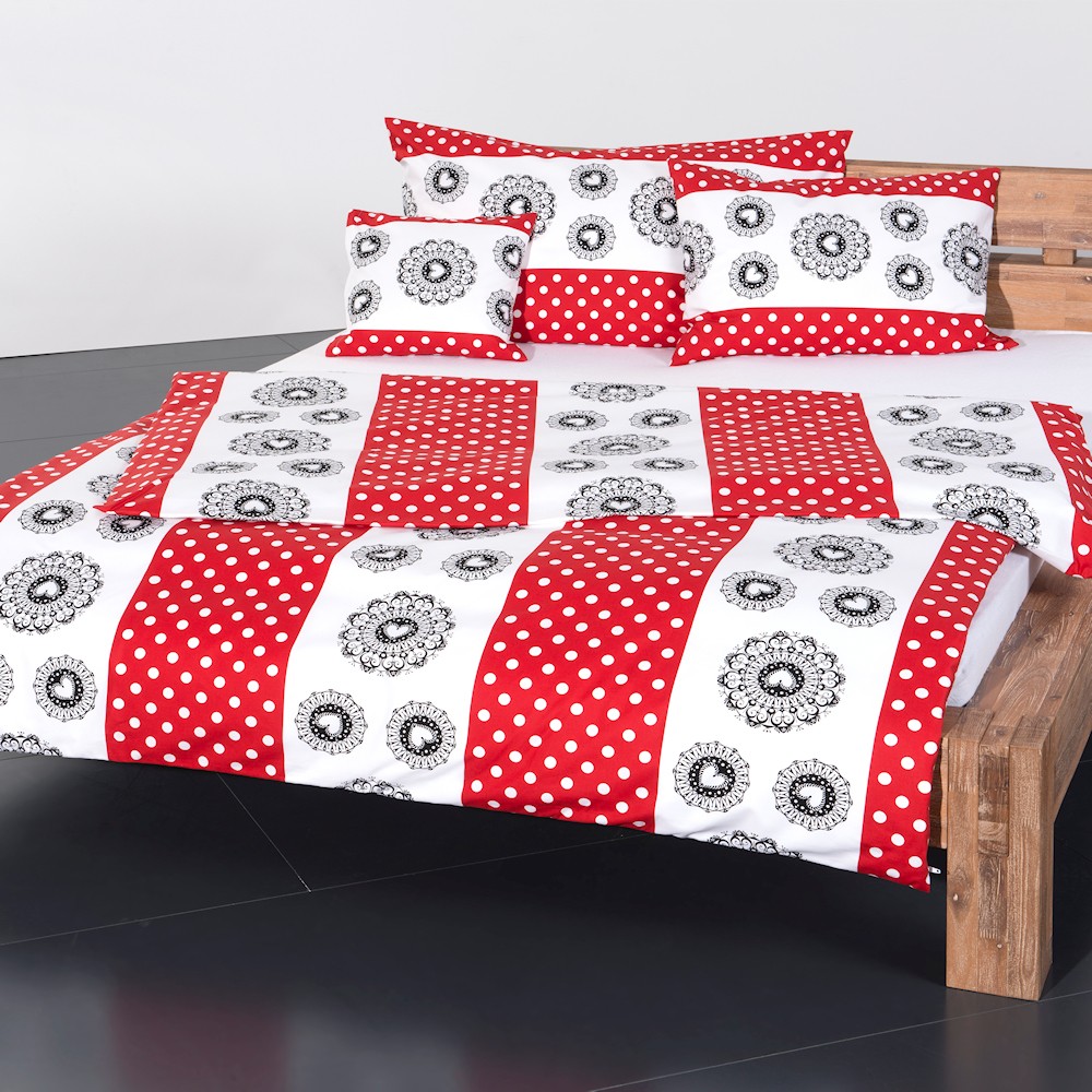Traditionelle Markenbettwäsche Kultschtoff: Exklusive Alpen-Look Landhaus Bettwäsche Tupfen mit Punkten Muster, aus hochwertigen Baumwollgarnen. Der moderne und urgemütliche Alpenchic lässt sich in jedem Raum in der Wohnung- und Chalet umsetzen. Die positiven Eigenschaften von 100% Naturfasern wie Feuchtigkeitsaufnahme, Strapazierfähigkeit und Pflegeleichtigkeit wird unterstützt mit einer ausgewogenen Hochveredelung.