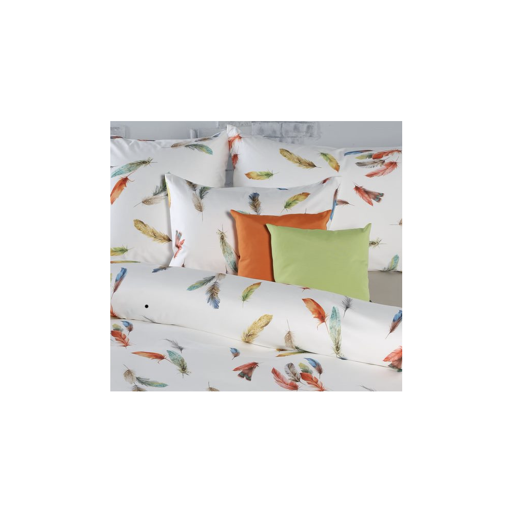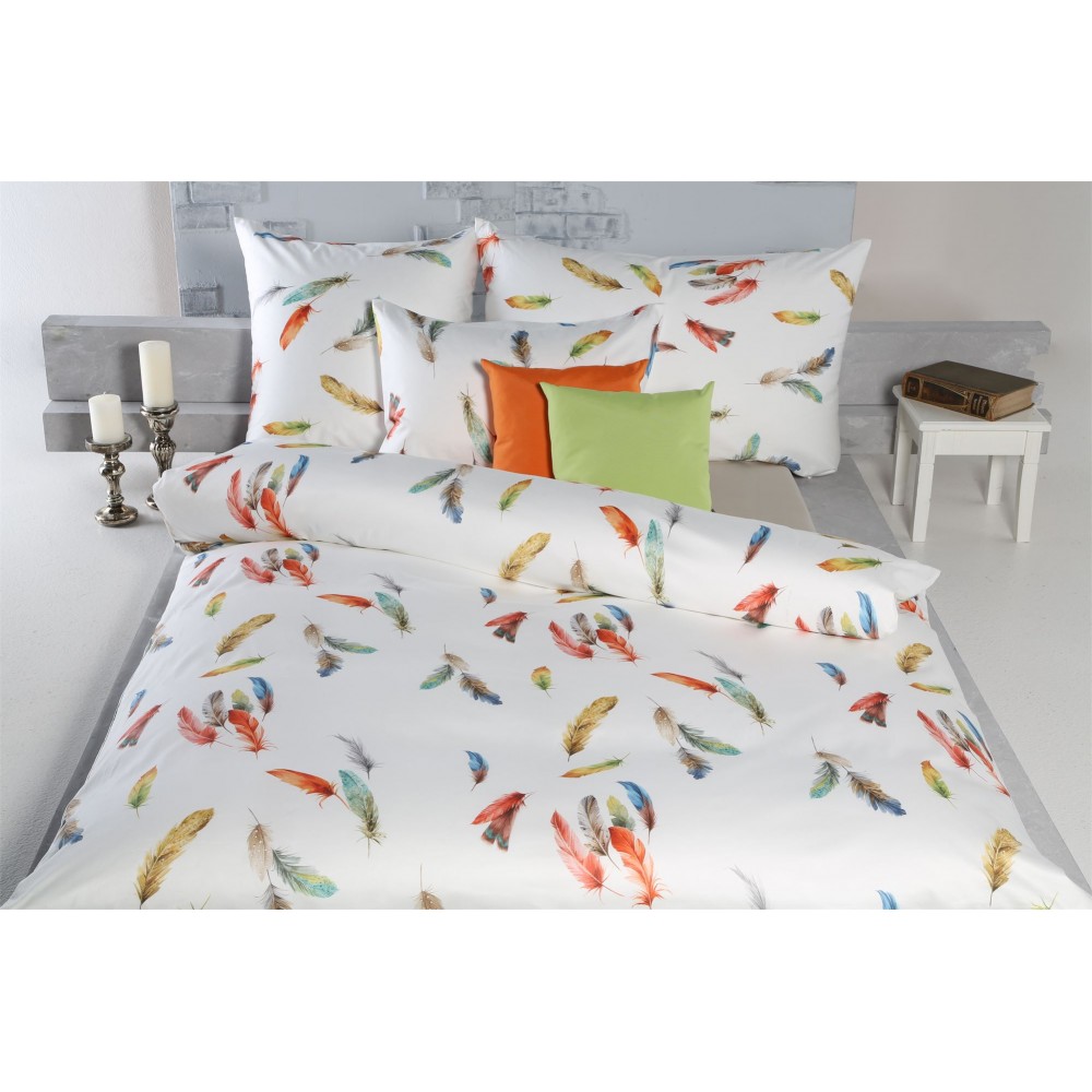 Tamara R, aktuelle Bettwäsche LORESSA aus 100% Makro-Baumwolle, mercerisierter Feinsatin, mit Federmuster multicolor auf weissem Grund. Marken Feinsatin Bettwäsche Tamara R Emotion - Dessins und Stoffe höchster Qualität. Nur die besten Druckereien erhalten Aufträge für diese Kollektion! Mit aussergewöhnlichem Charakter! Geniessen Sie diese absolute Exklusivität.