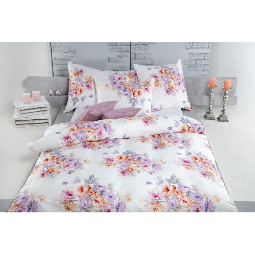 Elegante Acolori Satin Bettwäsche ELLIE mit zartem florealen Rosenstrauss-Muster, aus 100% Baumwolle. Aktuelle und modische Dessin die das Schlafzimmer auffrischen. Diese Bettwäsche wird in der Schweiz verarbeitet und hergestellt und dies erst noch zu einem sehr attraktiven Preis. Bei richtiger Behandlung werden Sie an dieser Satin Bettwäsche noch nach Jahren grösste Freude haben. Satin hat eine einzigartige Eigenschaft im Winter wärmt und im Sommer angenehm kühlt, aufgrund der Naturrohstoffen absorbiert perfekt Feuchtigkeit und ist atmungsaktiv.