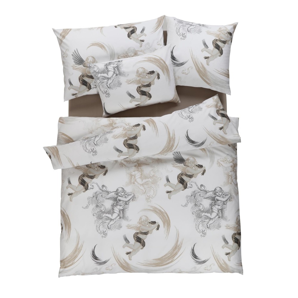 Elegante Acolori Satin Bettwäsche SERAFIM weiss, Engel auf hellem Grund, aus 100% Baumwolle. Aktuelle und modische Dessin die das Schlafzimmer auffrischen. Diese Bettwäsche wird in der Schweiz verarbeitet und hergestellt und dies erst noch zu einem sehr attraktiven Preis. Bei richtiger Behandlung werden Sie an dieser Satin Bettwäsche noch nach Jahren grösste Freude haben. Satin hat eine einzigartige Eigenschaft im Winter wärmt und im Sommer angenehm kühlt, aufgrund der Naturrohstoffen absorbiert perfekt Feuchtigkeit und ist atmungsaktiv.