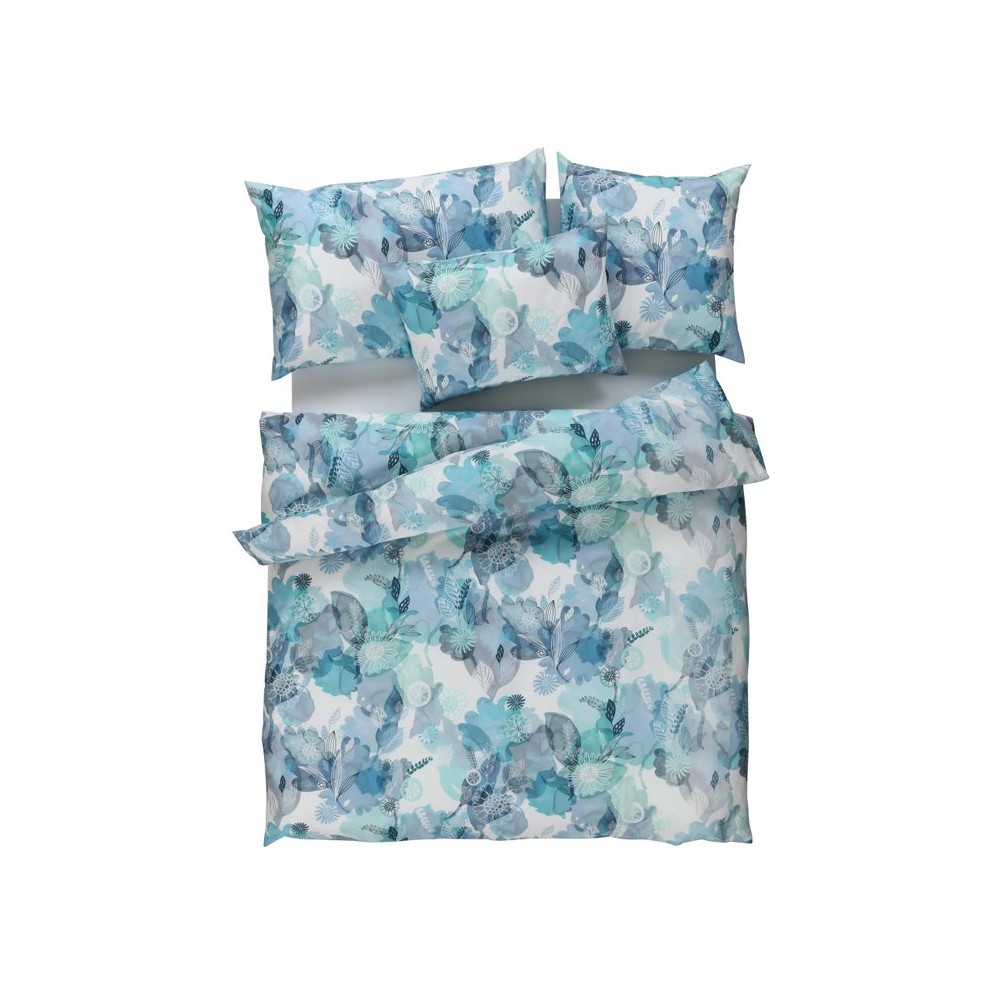 Tamara R Feinsatin Bettwäsche LARA, mit Blätter- und Blumenmotiv in sanften blau/türkis-Tönen auf hellem Grund, In Einzelgrössen erhältlich.