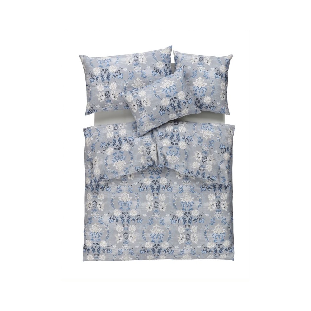 Satin Bettwäsche MARIA, feines Blumen- und Blättermotiv mit grau-blau Tönen aus 100% Baumwolle-Satin