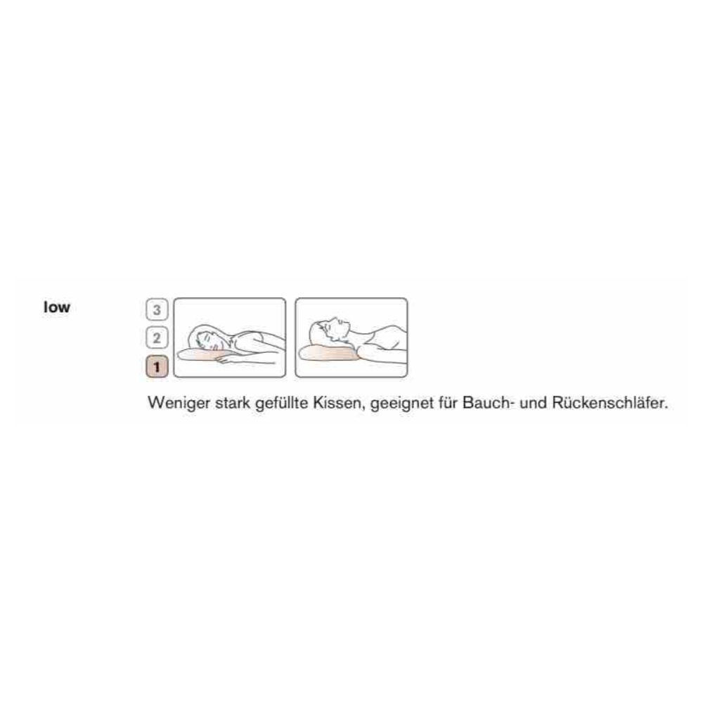 Hochwertige Qualität zu tollen Preisen - CALTHA CLASSIC low, das gute, spezielle 3-Kammer Kissen. Aussen gefüllt mit neuen, reinen, weissen, Entendaunen 90% und einem Kern gefüllt mit neuen, reinen Gänsefedern weiss. Der Kern stützt optimal und durch die Aussenfüllung ergibt sich ein angenehm weiches Kuschelgefühl (kein Lebendrupf - tierfreundlich). Die verwendeten Naturprodukte sorgen für den idealen Wärmeausgleich. Dieses weniger gefüllte Kissen mit dem Stützkraftindex 1, eignet sich vor allem für Bauch- und Rückenschläfer. Es garantiert einen besseren Schlafkomfort und eine längere Lebensdauer. Selber waschbar und deshalb sehr hygienisch! Verpackt in praktischer, transparenter Tragetasche mit Griffen.