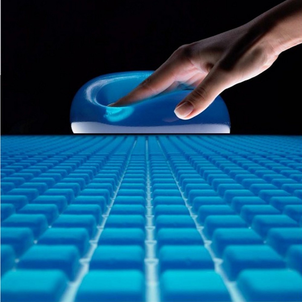 Dank des langsamen Zurückkehrens in die Ausgangsform, ist Technogel ein aussergewöhnlich Druck entlastendes Material, welches hilft Schmerzen und Unwohlsein zu vermeiden. Die 3 D Verformung wird durch die spezielle Noppenstruktur im höchsten Grade noch unterstützt.